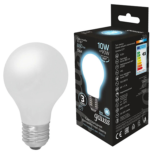 Лампа светодиодная Gauss 102202210 Filament (A60 стандарт, 220 В, Е27, 10 Вт, 860 лм, 4100 К)