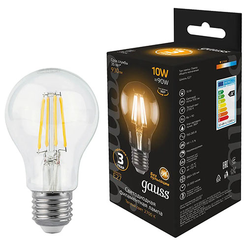 Филаментные cветодиодные лампы Gauss привычный вид классических ламп накаливания, освещают пространство на 360° и дают больше света, по сравнению с обычными светодиодными лампами, за счет прозрачной колбы.