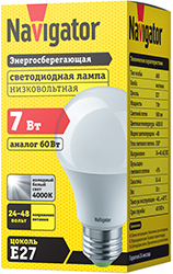 Лампа светодиодная низковольтная Navigator NLL-A60-7-24/48-4K-E27 (24 / 48 В, 7 Вт, 560 лм), цвет свечения нейтральный белый