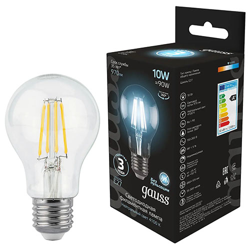 Лампа светодиодная Gauss Filament 102802210 (10 Вт, E27, А60 стандарт, 970 лм, 4100 К)