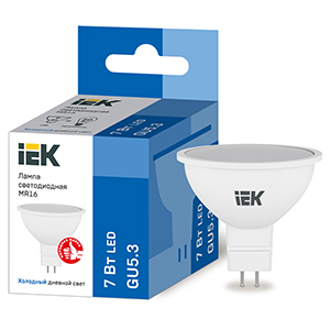 Лампа светодиодная IEK LLE-MR16-7-230-65-GU5 (7 Вт, GU5.3, MR16, 220 В, 630 лм), цвет свечения холодный белый