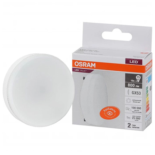 Лампа светодиодная Osram LED Value 10 Вт GX53 4000 К (tablet, 220 В, 800 лм)