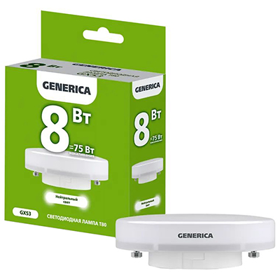 Лампа светодиодная Generica LL-T80-08-230-40-GX53-G (tablet, 220 В, 8 Вт, 800 лм, 4000 К)