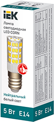 Лампа светодиодная IEK LLE-CORN-5-230-40-E14 (капсула, 220 В, E14, 5 Вт, 475 лм, 4000 К), прозрачный