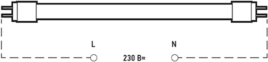 удалить или отсоединить дроссель и стартер, подключить светодиодную лампу в соответствии с нижеприведенной схемой.