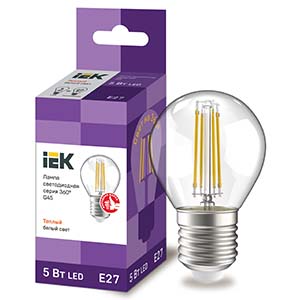 Лампа светодиодная IEK LLF-G45-5-230-30-E27-CL (G45 шар, E27, 5 Вт, 600 лм), прозрачная, цвет свечения теплый белый