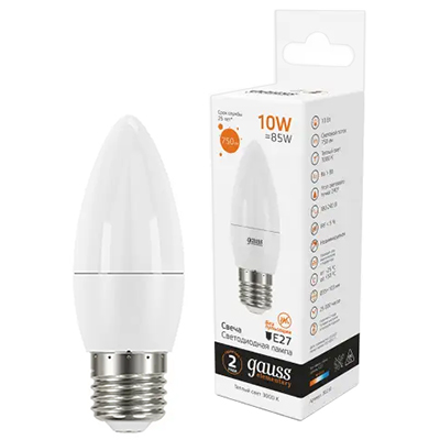 Лампа светодиодная Gauss 30210 (свеча, Е27, 10 Вт, 750 лм, 3000 К)