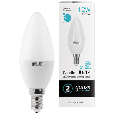 Лампа светодиодная Gauss 33122 Elementary (С37 свеча, 220 В, Е14, 12 Вт, 920 лм, 4100 К)
