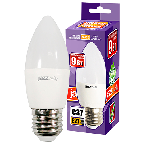 Лампа светодиодная Jazzway PLED-SP C37 9w E27 3000K (свеча, 820 лм)