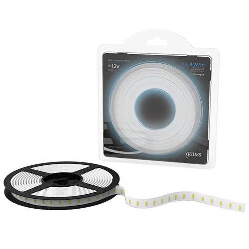 Лента светодиодная Gauss LED 5050/60-SMD 14.4W 12V DC Black (5050, 12 В, 14,4 Вт/м, 60 свд/м, 660 лм/м, 6500 К, IP20)