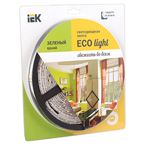 Лента светодиодная IEK LSR-3528G60-4.8-IP65-12V ECO (DC 12 В, 4,8 Вт, 60 led/м, IP65), цвет свечения зеленый