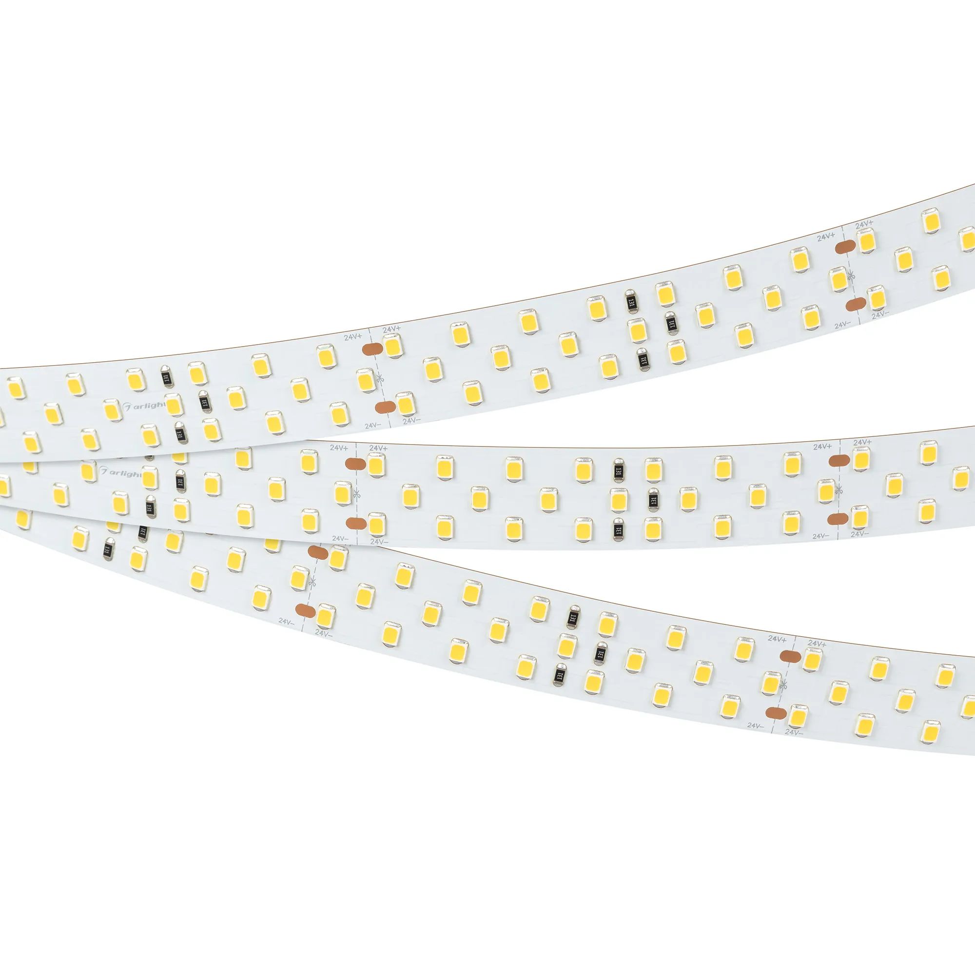 Широкая трехрядная лента Arlight серии LUX применяется для создания встроенных линий света основного освещения, а также для создания накладных и подвесных светильников из алюминиевого профиля.