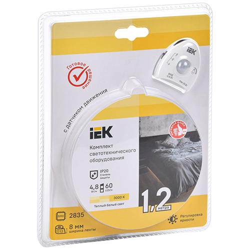 Комплект светодиодной подсветки "Сделай сам" IEK LSR1-1-060-20-1-D12-S3 (led лента 1,2 м, 12 В, 4,8 Вт/м, 60 led/м, 3000 К, IP20, драйвер, датчик движения)