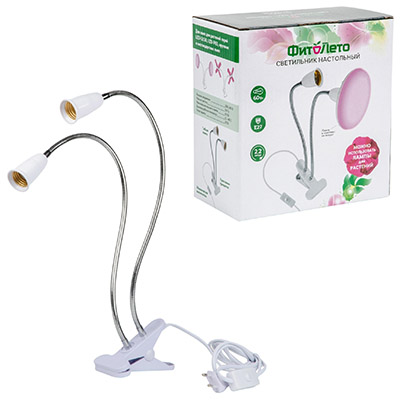 Светильник Uniel TLI на прищепке с 2 патронами Е27 на гибких ножках предназначен для использования с фитолампами.