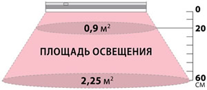 | Площадь освещения, кв.м | 1,2 (расстояние до освещаемого объекта 20 см), 2,25 (расстояние до освещаемого объекта 60 см) |