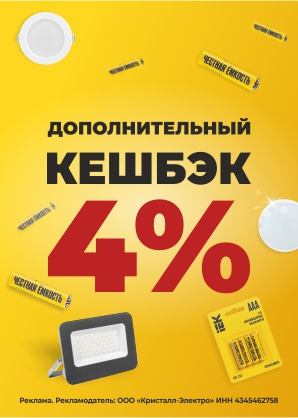 За покупку элементов питания и светотехники IEK до 30 апреля мы начисляем дополнительный кешбэк 4% на все бонусные карты.